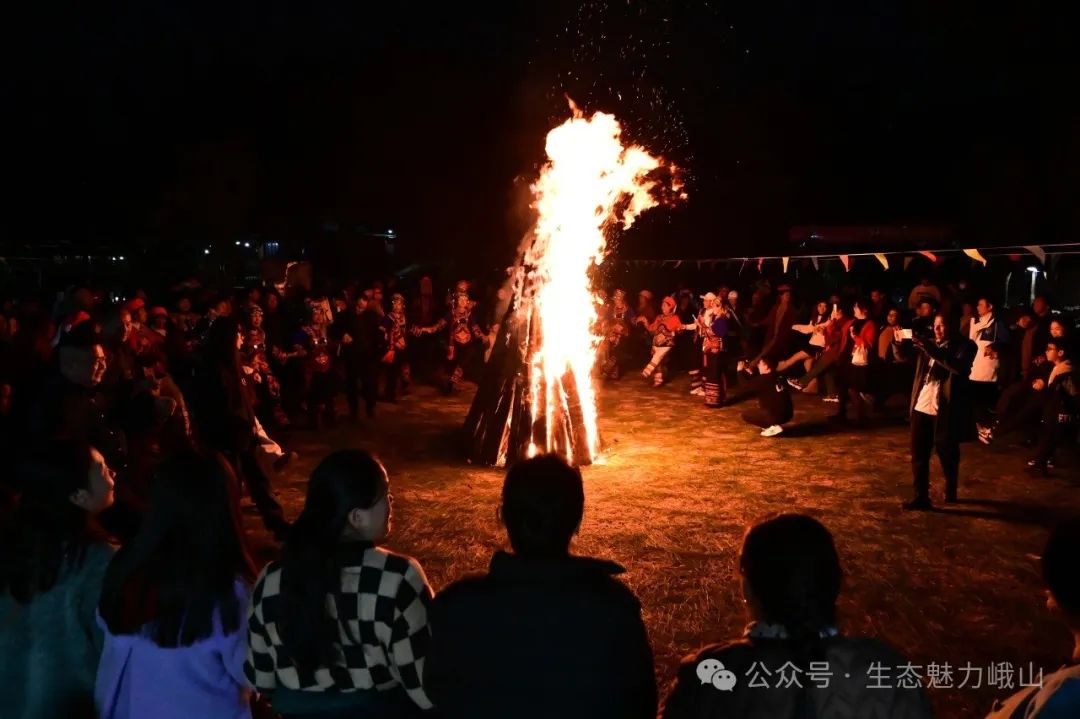夜幕降临,在欢声笑语中篝火晚会开始了,美食与民俗的碰撞在此刻达到了高潮,四方游客和彝家姐妹围着熊熊燃烧的篝火纵情狂欢,感受彝家人火一样的热情。