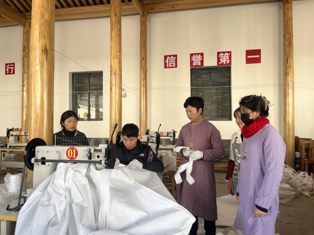 “我家孩子还在上小学,自己需要照顾家庭,不方便外出打工,现在,空闲时我就到厂里来上班,时间可以自由支配,做得多的时候每天能做30—40个,多劳多得,一个月多的时候能挣到3200元左右,还不耽误在家照顾老人孩子,别提有多开心了。”正在缝制吨袋的陶安蓉笑着说。