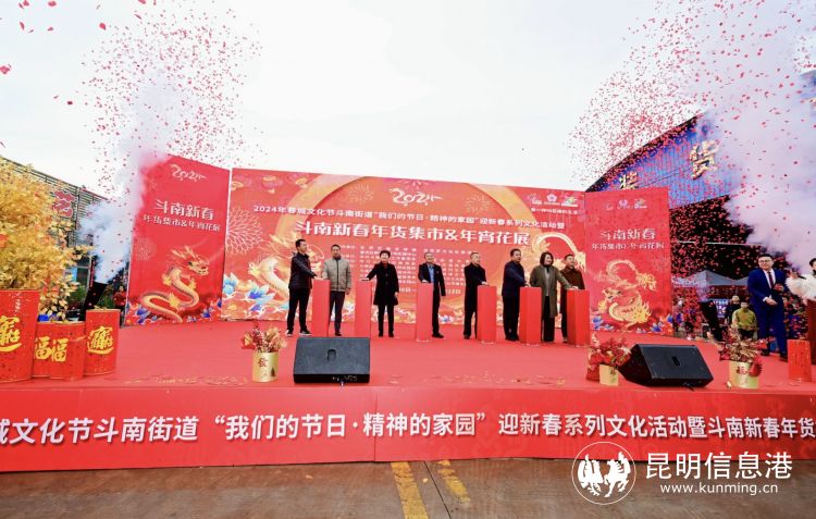 昆明信息港讯 记者李莹 随着春节脚步越来越近,昆明城大街小巷张灯结彩,年味渐农。眼下正是置办年货的好时候,1月26日,昆明呈贡斗南新春年货集市拉开序幕,135个展位不仅丰富美食、新春游园、趣味游戏一站囊括,更有斗南“招牌”鲜花、盆景邀请市民玩赏。斗南年货集市将从“视觉、听觉、触觉、味觉”4方面呈现“龙年迎花开”的新春节日氛围,带领大家感受“有一种叫斗南的生活”。