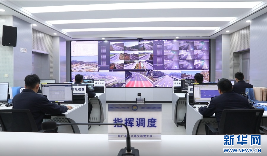 昆广大队指挥中心(1月19日摄)。新华网发(楚雄州公安局交警支队供图)