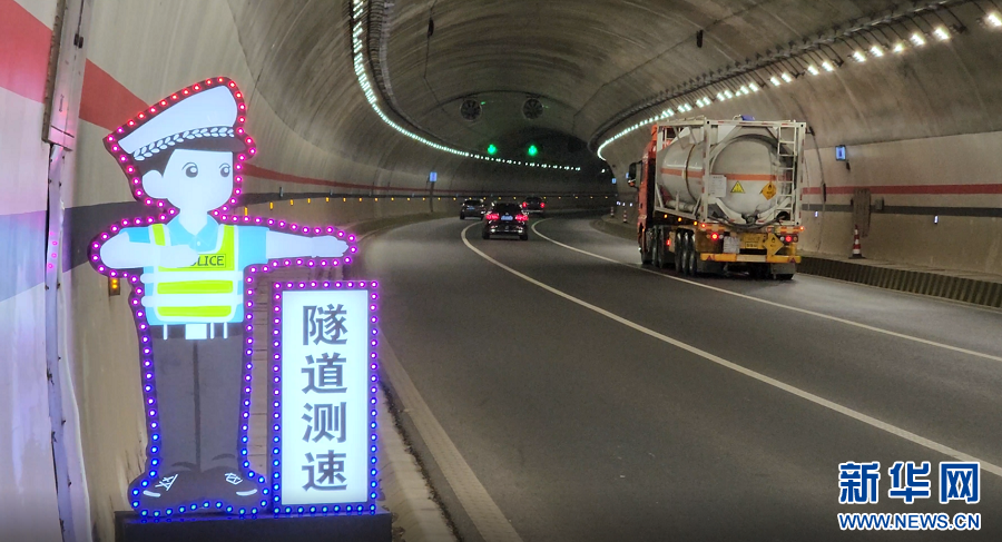 隧道内的反光“小警察”(1月19日摄)。新华网发(楚雄州公安局交警支队供图)