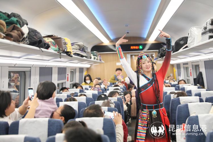 活动现场,铁路职工表演了歌曲《坐着动车去老挝》、换装表演《铁路制服变迁T台秀》、快板《旅途漫漫文明伴 平安铁路平安行》、歌曲《七彩天路》、朗诵《铁路旅客文明出行倡议》、舞蹈《“温馨春运、文明相伴”快闪》等文艺节目;在昆明南站候车厅设置文明出行承诺签名打卡,邀请旅客签名,发放文明宣传折页、赠送文创产品;开展了“送万福进万家”新春送福活动,铁路书法协会会员在现场写对联、福字等赠送旅客;在C281次等列车上还开展了文明出行知识问答、文明出行宣传、发放文明出行宣传折页等活动。