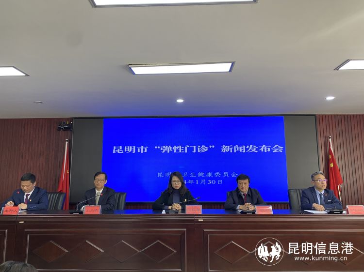 昆明信息港讯 记者曹芸 1月30日,昆明市卫生健康委就昆明市市级公立医院开通“弹性门诊”的相关内容召开新闻发布会。昆明市卫生健康委副主任王庆华、昆明市延安医院院长李汝红、昆明市儿童医院院长李铁松、昆明市中医医院副院长杨登科出席,对大家所关心的问题进行解答。