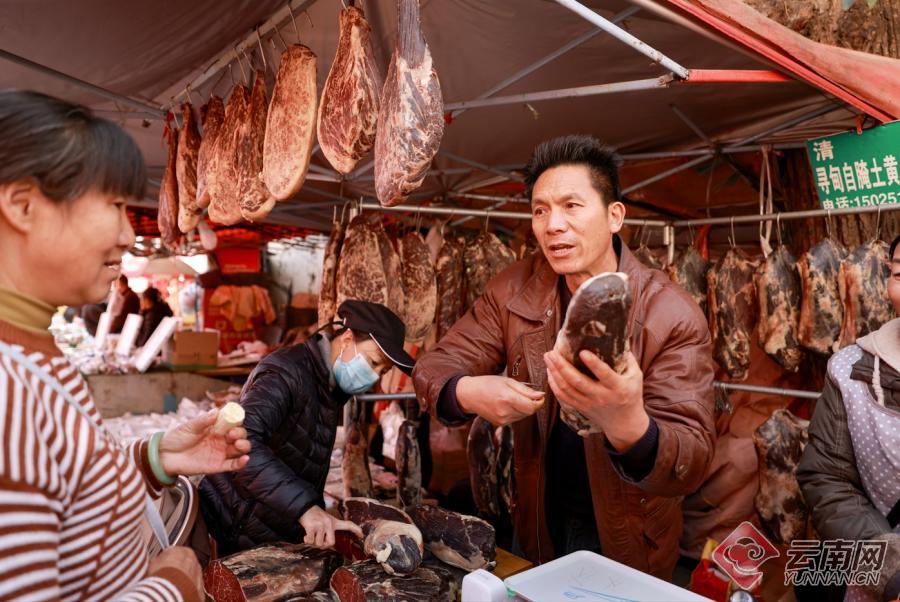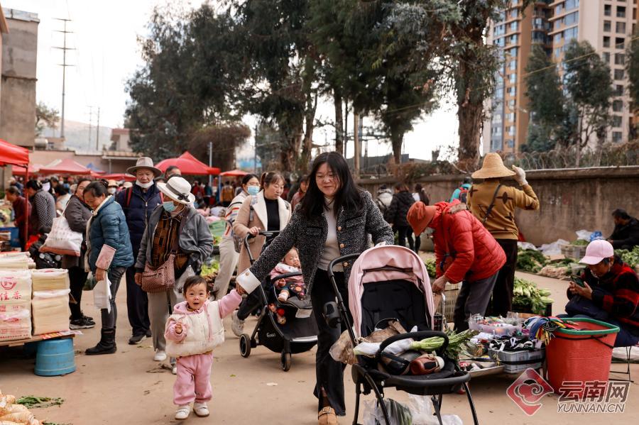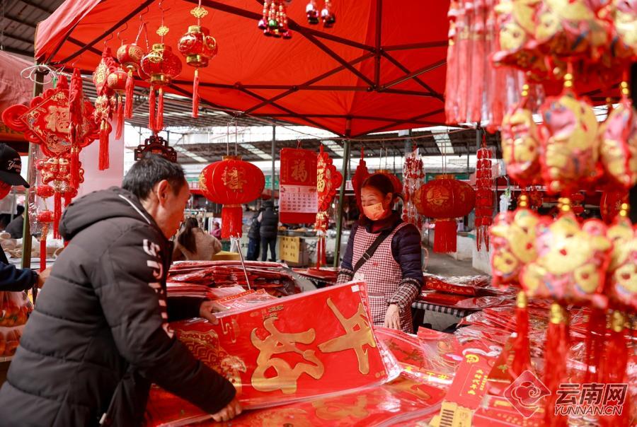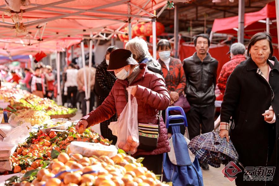 临近春节,昆明主城区保存完好的各处“乡街子”成为市民采购年货的好去处。又到赶集日,位于昆明市五华区普吉路的普吉“三八街”热闹无比。丰富新鲜的蔬菜水果、香气十足的熟食制品、琳琅满目的年货产品……市场供应货源充足,价格稳定,前来购物的市民络绎不绝。
