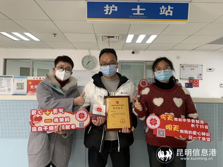 昆明信息港讯 记者李红鸾 2月7日 在昆明一医院的血液科,来自云南保山的杨老师为一名血液病患者捐献了“生命的火种”——造血干细胞悬液。成为云南省第368例成功捐献造血干细胞的志愿者。当天,带着他体温的“生命火种”被志愿者带走,并输入一名陌生血液病患者的体内,为素不相识的患者送上龙年春节的最好礼物和祝福。