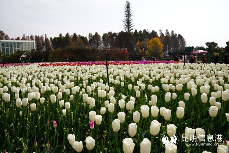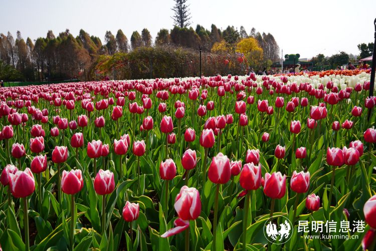 昆明信息港讯 记者杨雁 2月的昆明,哪里春深似海,哪里花海如潮,令人陶醉?位于昆明滇池国家旅游度假区捞渔河湿地公园内22个品种100万株的郁金香花海必定算是最佳花潮胜地之一。如今,园内的郁金香已进入盛花期,满园成为了彩色花海和散落的调色盘,美轮美奂。
