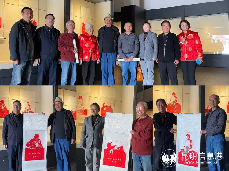 展览现场,还展出了昆明民间文艺家协会合虚民族民间文化传习馆艺术家们为吴然、刘建明、金永才3位昆明市德艺双馨艺术家创作的肖像剪纸,并现场赠与吴然、刘建明、金永才3位艺术家。“我们展览的主题是龙腾盛世,这盛世需要每一位建设者的共同努力,我们创作、宣扬这些德艺双馨的艺术家,就是希望以此激励广大艺术家群体,坚守理想、不忘初心、崇德尚艺,共同用艺术之光点亮龙腾盛世。”昆明民间文艺家协会副主席、合虚民族民间文化传习馆负责人王仲德说。