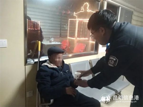 昆明信息港讯 记者合宇聪 2月26日晚,嵩明县公安局嵩阳派出所兰茂警务亭接到群众报警求助,群众在兰茂广场假山处看到一位老人摔倒,需要帮助。