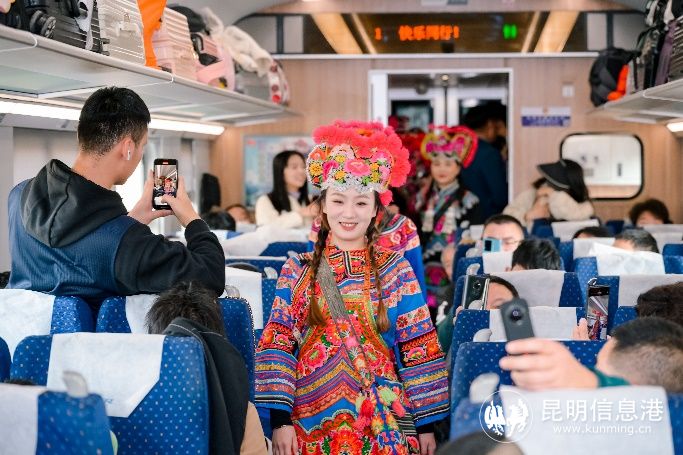 2024年龙年元宵节,中国铁路昆明局集团有限公司与楚雄州政府、永仁县政府联手在复兴号动车上开展的“非遗闹元宵——永仁2024直苴彝族赛装群众性文化活动”和“千年彝装秀”展演活动就登上了央视新闻直播间。活动中,音乐声响起,在动车组1号车厢里,彝族姑娘们身着传统赛装服饰结伴登上“流动T台”,为旅客们带来一场精彩绝伦的视觉盛宴,给平淡的旅途增添了不一样的色彩,让游客们体验到了永仁的美好与热情。