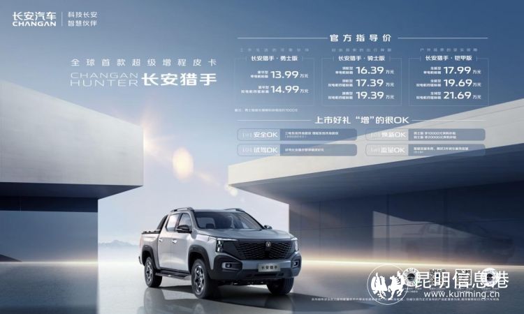 多项首创的领先技术的应用,让长安猎手为当下皮卡用户提供了用车最优解,带来可满足全方位需求的“新皮卡”。二十万内最好皮卡,没有之一,全球首款超级增程皮卡长安猎手正式上市,绝对OK。极富诚意的价格和福利,将让更多用户能够拥有“新皮卡”,享受“新皮卡”,也让我们相信,长安猎手的市场表现,一定会绝对OK!(昆明信息港)