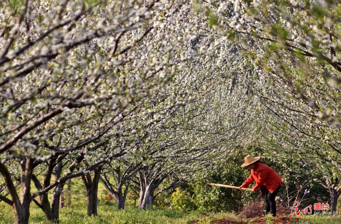 2024年3月5日,农民在江西省吉安市永丰县一家果园进行田间管理。(刘浩军摄/光明图片)