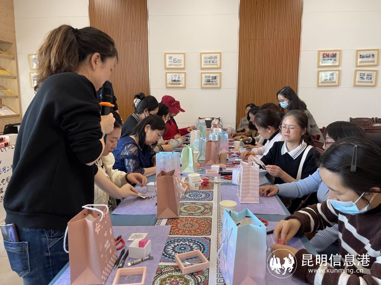 随后,手创时光工作室老师介绍了植鞣革(皮雕)技艺制作工艺的基础知识与制作要领,并指导制作皮雕胸针。现场气氛热烈而温馨。