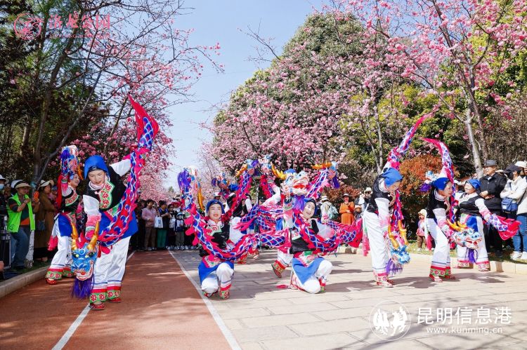 昆明信息港讯 记者段佳琪 3月9日上午,昆明市呈贡区“繁花呈贡 ‘樱’你而美”2024洛龙公园第一届樱花节开幕。
