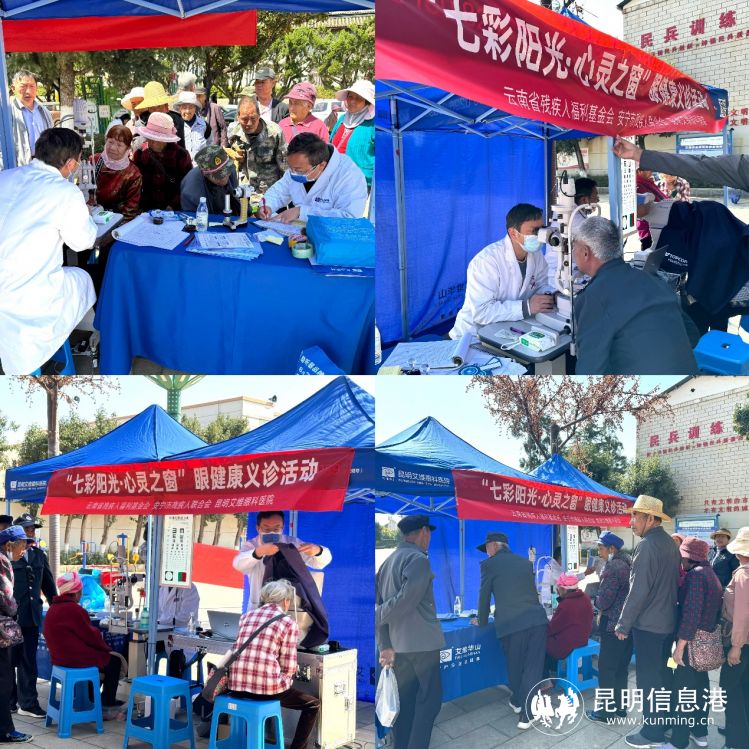 昆明信息港讯 近日,“七彩阳光·心灵之窗”眼病项目义诊首站在安宁市八街街道实施。该项目是由云南省残疾人福利基金会捐助,安宁市残联牵头组织,昆明艾维眼科医院负责实施的针对辖区内受眼疾困扰的广大市民,白内障、翼状胬肉、视网膜脱离等眼病复明手术项目。旨在让广大眼病患者得到实实在在的救助。
