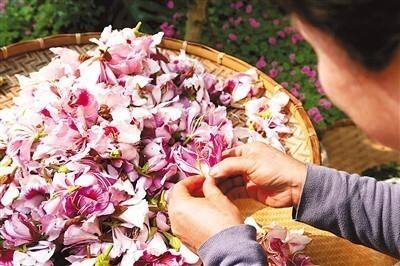 黄绿色的金雀花、粉粉嫩嫩的玉荷花、白族人爱吃的大白花杜鹃……中国科学院昆明植物研究所的一项研究显示,云南省有300余种食用花卉,“春日食花”是云南人一项特殊的传统习俗。在众多可食用的花卉中,接受度最高、流传范围最广的当属食用玫瑰。