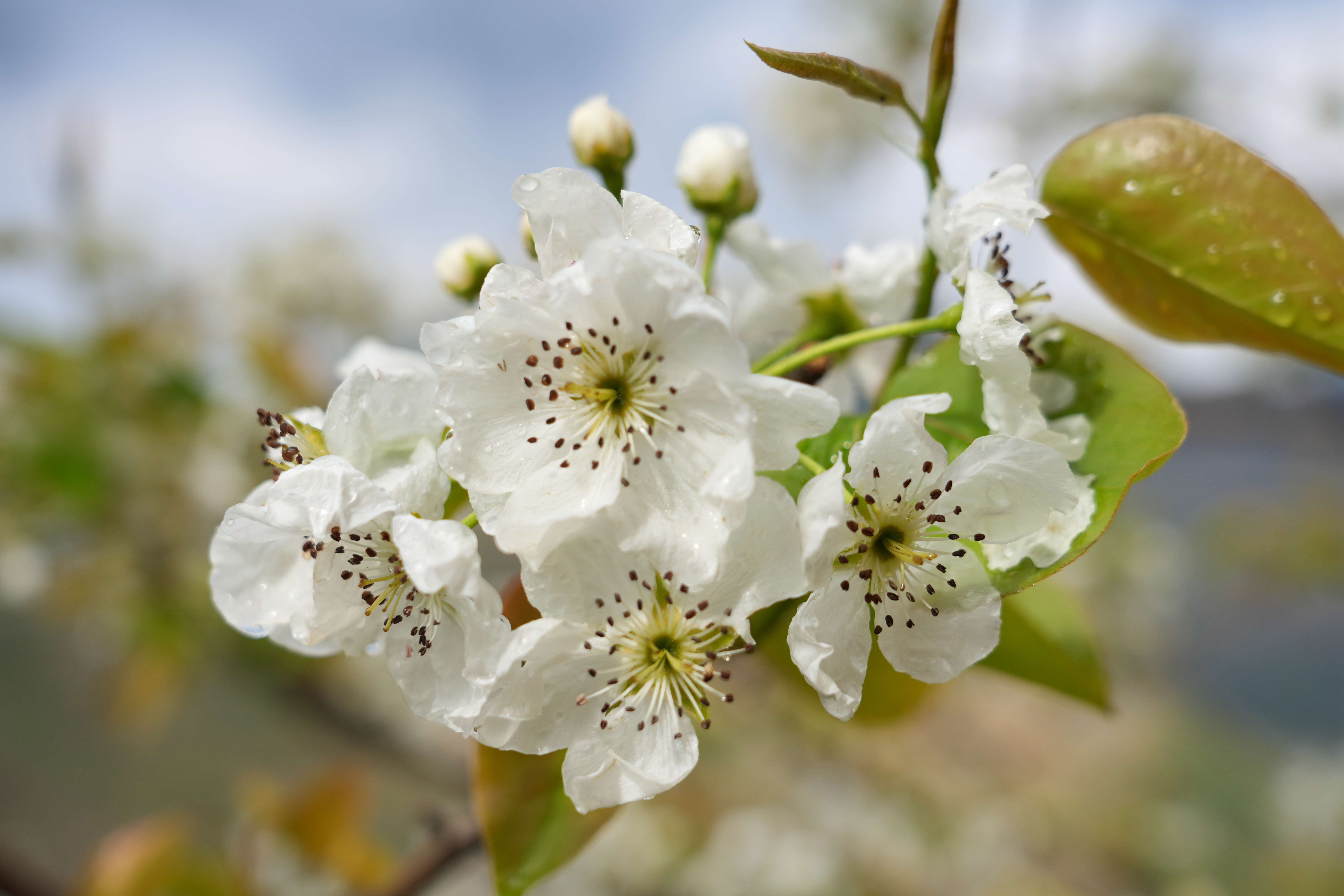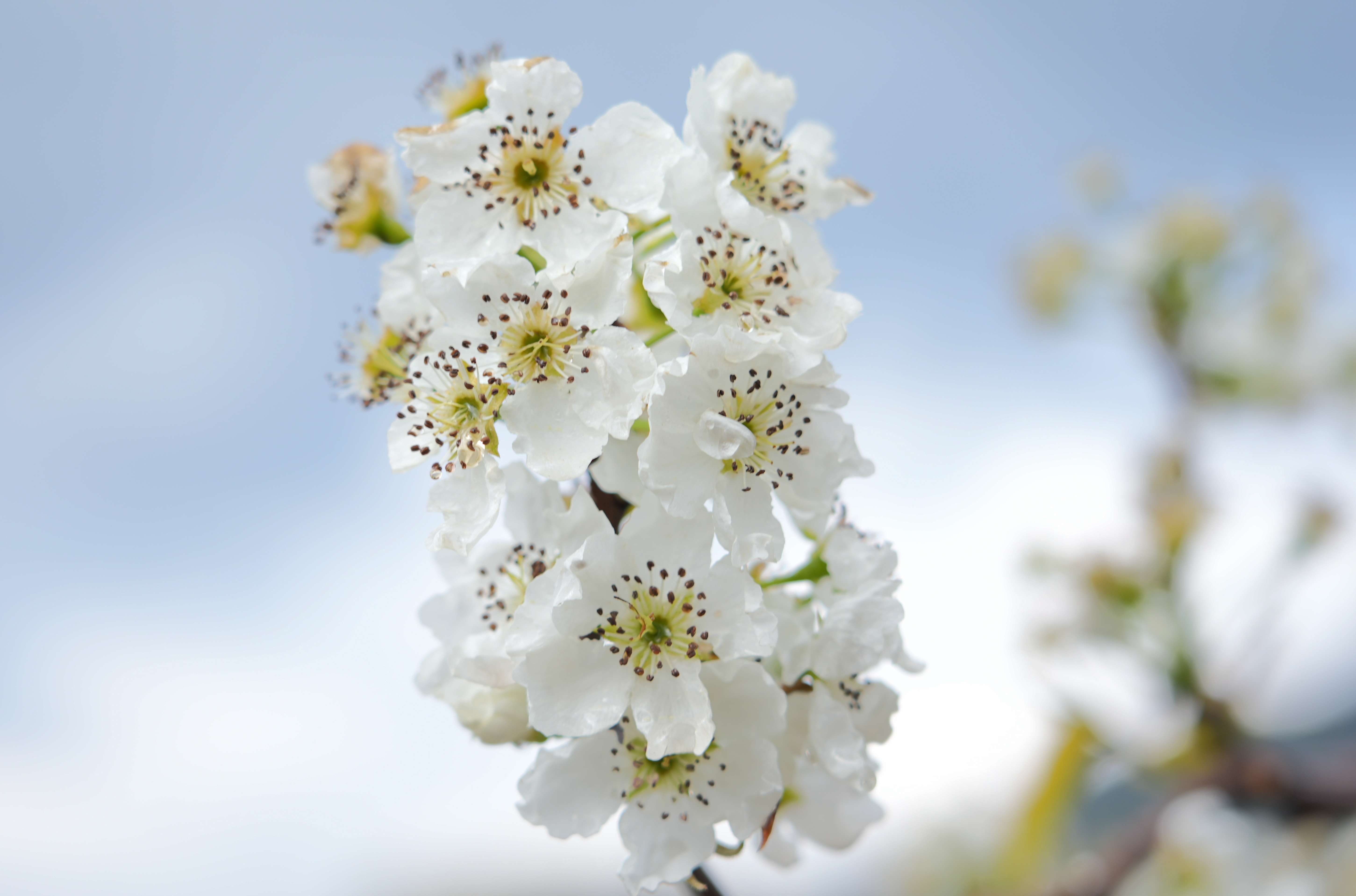雨后的清晨,漫步在梨花林中,恍若刚刚下了一场轻盈的雪,那一朵朵白色的花朵如雪花般纷纷扬扬的洒落在地上。