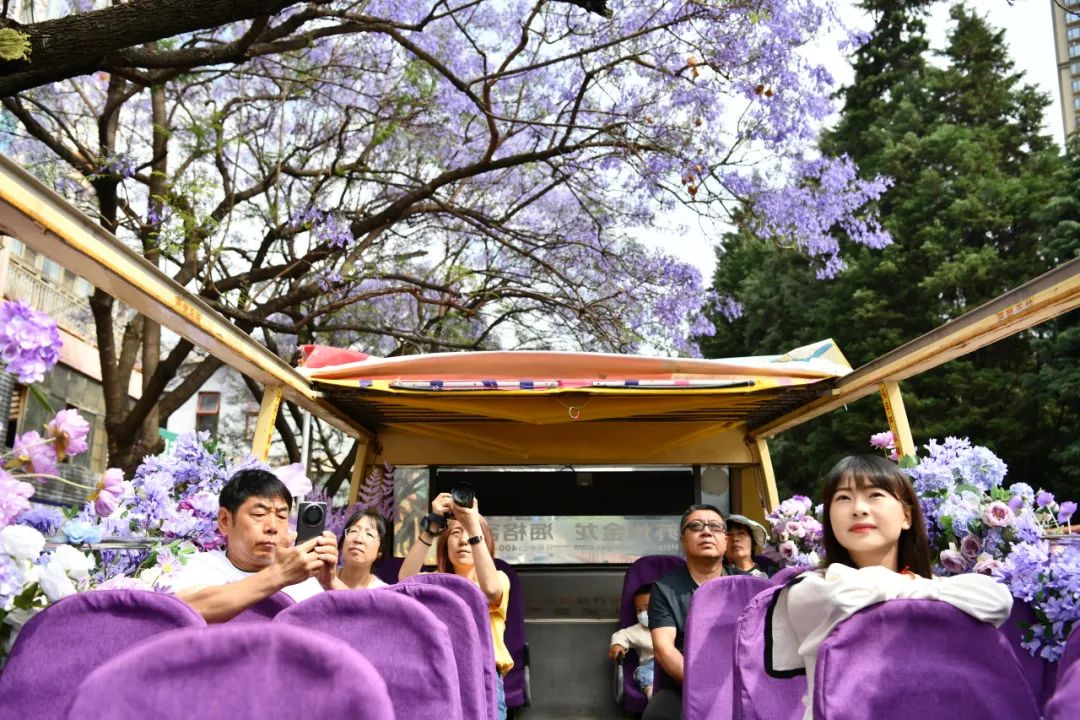 随着教场中路蓝花楹次第盛开,2024年第六届中国·昆明蓝花楹文化艺术节为市民提供了更多元的赏花方式。