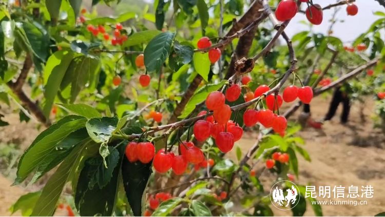 昆明信息港讯 记者杨雁 4月迎来樱桃成熟季,位于安宁市县街街道小红祥村127户农户房前屋后的600余亩樱桃陆续进入成熟期,鲜红的果实挂满枝头。该村近几年改良后种植的新品种红妃、红宝石等樱桃口味颇受群众喜欢,四面八方的游客纷纷前来入园采摘新鲜果实。