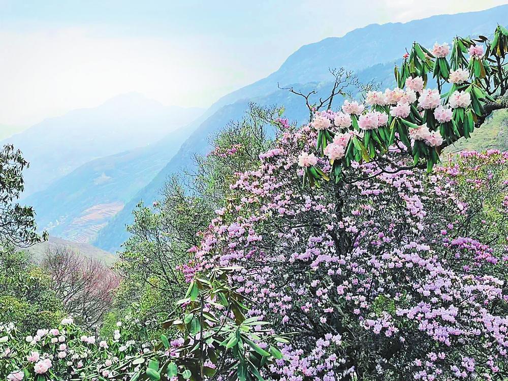 4月中旬,禄劝彝族苗族自治县雪山乡神仙坝的大王杜鹃竞相绽放,成为禄劝文化旅游的名片。(云南日报 记者党晓培)