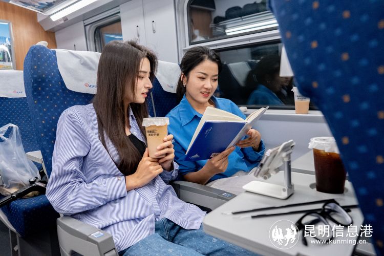 昆明信息港讯 记者上官艳君 “这是我第一次从昆明坐动车去西双版纳,车上的读书角可以借阅到很多书,没想到在高铁上也可以享受一段美好的阅读时光。”近日,在昆明至磨憨的C384次餐车读书角,正在看书的重庆旅客李先生高兴地说。