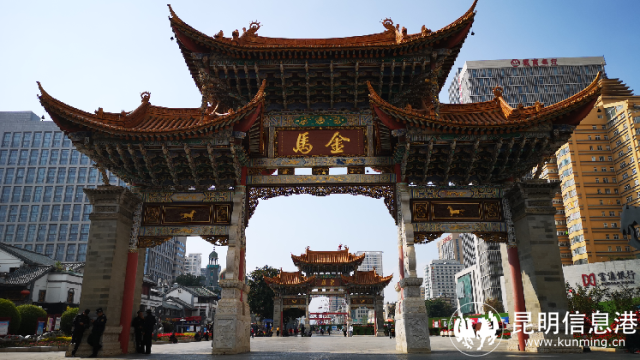 5.金马碧鸡坊:金马碧鸡坊位于昆明市中心三市街与金碧路汇处,是昆明的标志性建筑和象征,至今已有近四百年的历史。东坊临金马山而名为金马坊,西坊靠碧鸡山而名为碧鸡坊,两坊相距数十米,均为门楼式木构牌坊。金马碧鸡坊的设计体现了古代云南人对数学、天文学和建筑学方面的造诣。金马碧鸡坊不仅具有深厚的历史底蕴,还是昆明市民休闲娱乐的好去处,夜晚的金马碧鸡坊更是璀璨夺目,成为昆明夜景的一道亮丽风景线。金马碧鸡坊在历史的进程中屡遭兵燹,又多次重建,现在的金马碧鸡坊是1998年在原址按原风格重建的,但它依然承载着昆明的历史和文化,成为这座城市不可或缺的一部分。