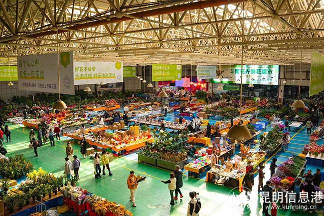 19.斗南花卉市场(中国鲜切花交易市场):位于昆明市呈贡区滇池东岸,是全国唯一的国家级花卉市场。斗南花市享有“金斗南”之称,是亚洲最大的鲜切花交易市场,也是中国乃至世界鲜切花的生产、交易、集散中心。斗南花市是云南省80%以上的鲜切花和周边省份、周边国家的花卉入场交易的地方,在全国80多个大中城市中占据70%的市场份额,出口46个国家和地区,有“全国10枝鲜切花7枝产自云南”之说。