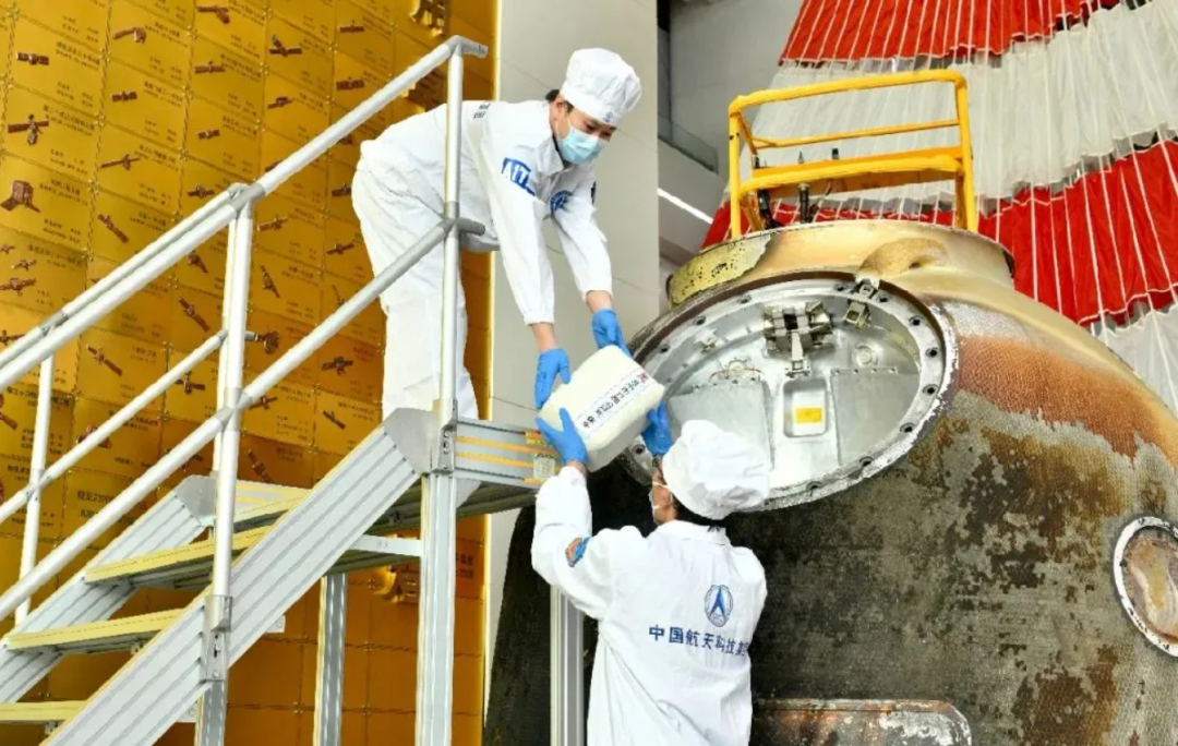 工作人员开舱取出神舟十二号载人飞船搭载物品 图源:云南发布