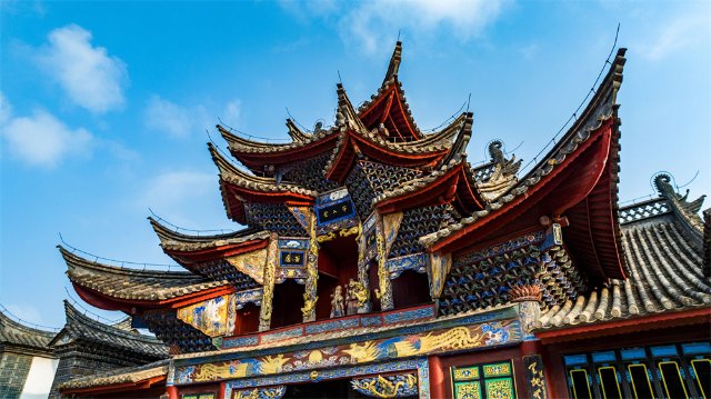 会馆,是会泽古城的一大特色,有着会泽铜商文化兴盛时期的历史回音。走进会泽古城,犹如穿越到明清时期的大街小巷,铸币工局、衙门官府、唐继尧故居、商行铺号、绅商公馆、望族宗祠、百姓居家,各得其所;一颗印、二进院、三坊一照壁、四合五天井、走马串阁楼,坐落有序,浑然一体。庄重古朴的会馆、庙宇,让人联想到当年商贾云集的繁华和辉煌。