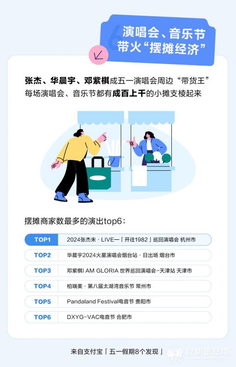 张杰、华晨宇、邓紫棋成五一演唱会“带货王”,周边摆摊小商家数量最多,每个演出现场都有成百上千的小摊在周边支棱起来。