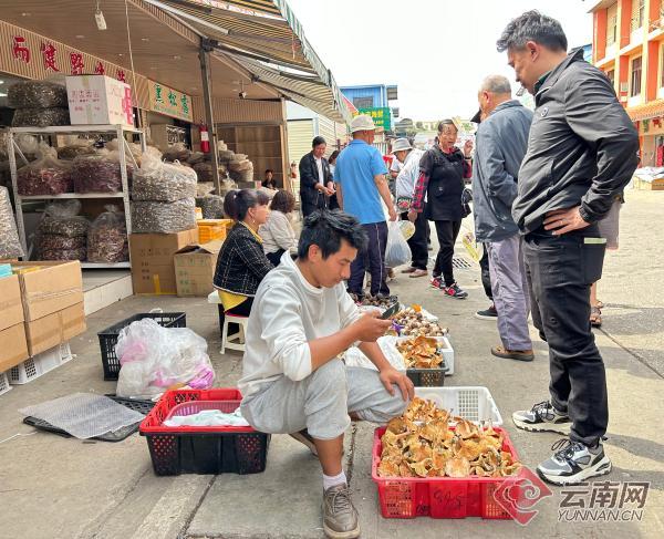“今年第一波青头菌昨天已经上市了,头水鸡油菌是5月2日上市售卖的。”云南木水花野生菌交易中心市场部主管翟占世说。
