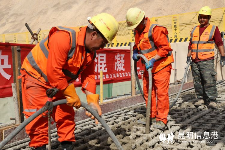 渝昆高铁长水机场站明挖区间首块顶板完成浇筑。通讯员李何 胡义 刘书峰 供图