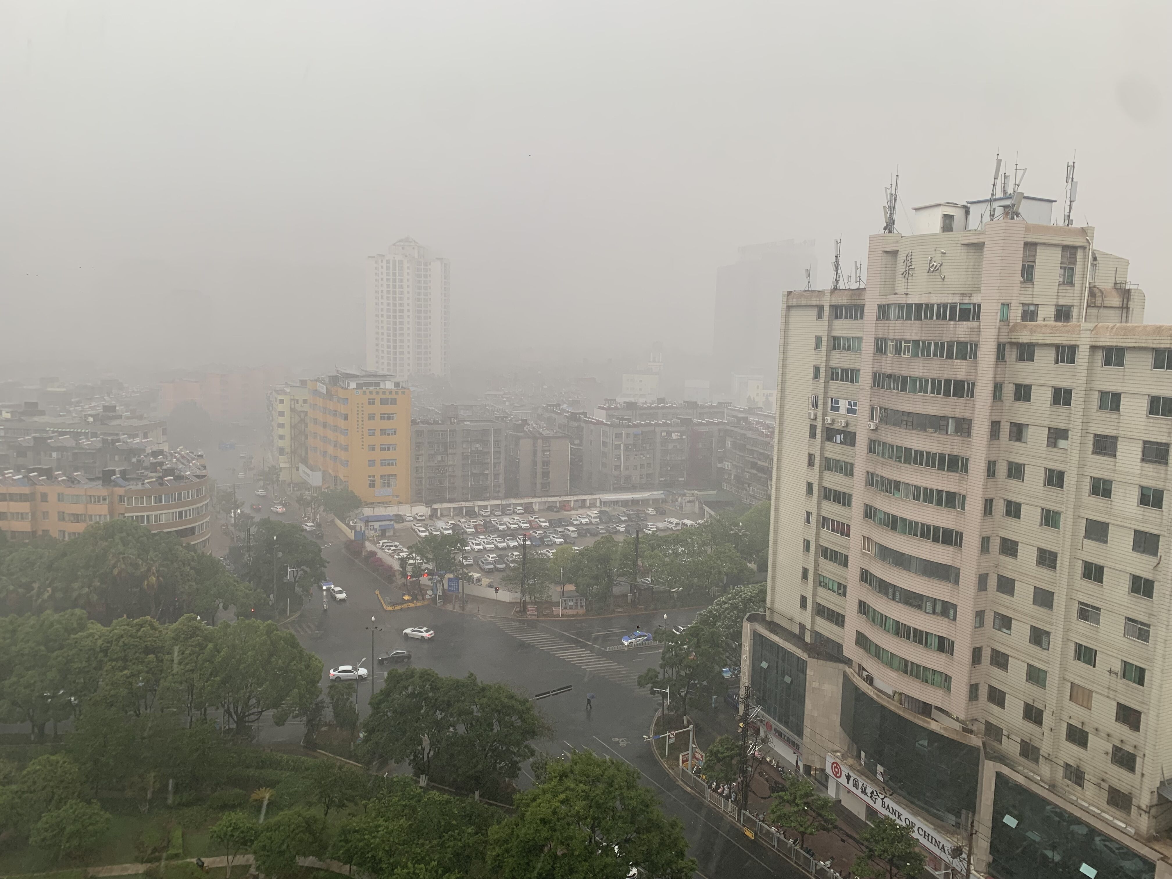 5月9日16时40分左右,昆明主城区狂风大作,电闪雷鸣,出现强对流天气。