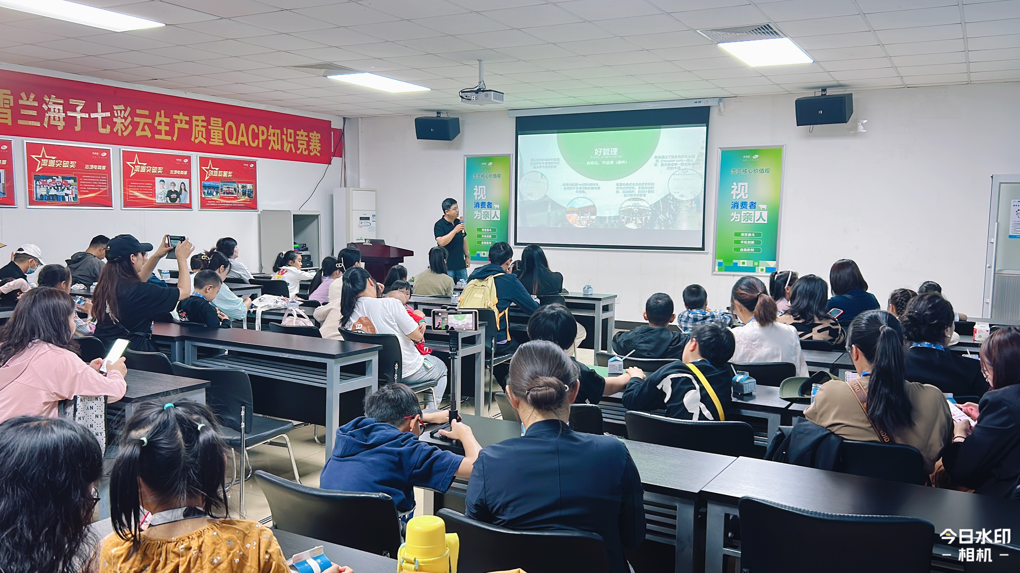 “大家看到我的左手边是‘中国好鲜奶’优质乳的形象墙,是2016年9月6日,雪兰作为全国首家通过国家农业部优质乳工程认证的企业时而做的形象墙。这代表着‘中国好鲜奶’的标准出现了。目前,雪兰建有石林牧场、陆良牧场、戚家山牧场三个现代化自有牧场,三个现代化自有牧场都通过GAP+一级认证的,其中戚家山牧场是按有机牧场的标准修建,三个自有牧场奶牛存栏数已经超达1万余头,均为澳大利亚进口奶牛。目前雪兰拥有西南片区最大的自有牧场群,也是奶牛存栏数量最大的乳品公司。三个牧场都是距离昆明的半径,在150公里以内的,做到距离越近越新鲜。”听到讲解员专业的介绍,小选手们忍不住连连惊呼,有的小选手还通过手机录音、笔记本记录等方式,将他们参观中收集到的“第一手信息”记录下来。