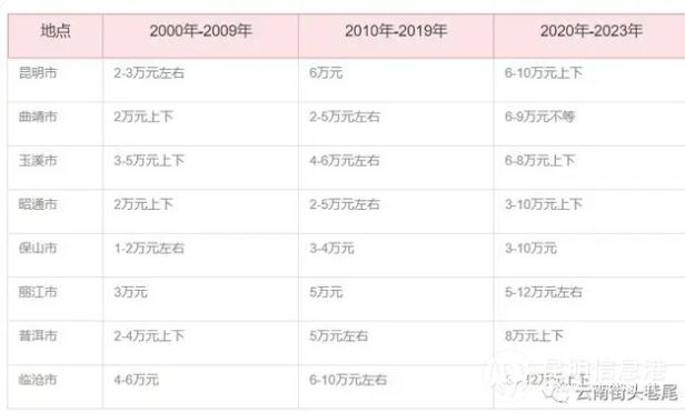 根据2023年的数据,云南的彩礼排名并不是特别高,普遍在6-10万元左右。但细看云南本地媒体的相关报道,云南的彩礼在2010-2019年间较十年前有比较明显的增长,如昆明、保山等地区增长已近一倍,2020-2023年间,曲靖、丽江等地区在原先基础上又增长了一倍,而其他地方普遍增加了2-3万元。照这种增长速度,虽还谈不上“天价彩礼”,但确确实实在加重云南各地适龄青年的结婚成本。
