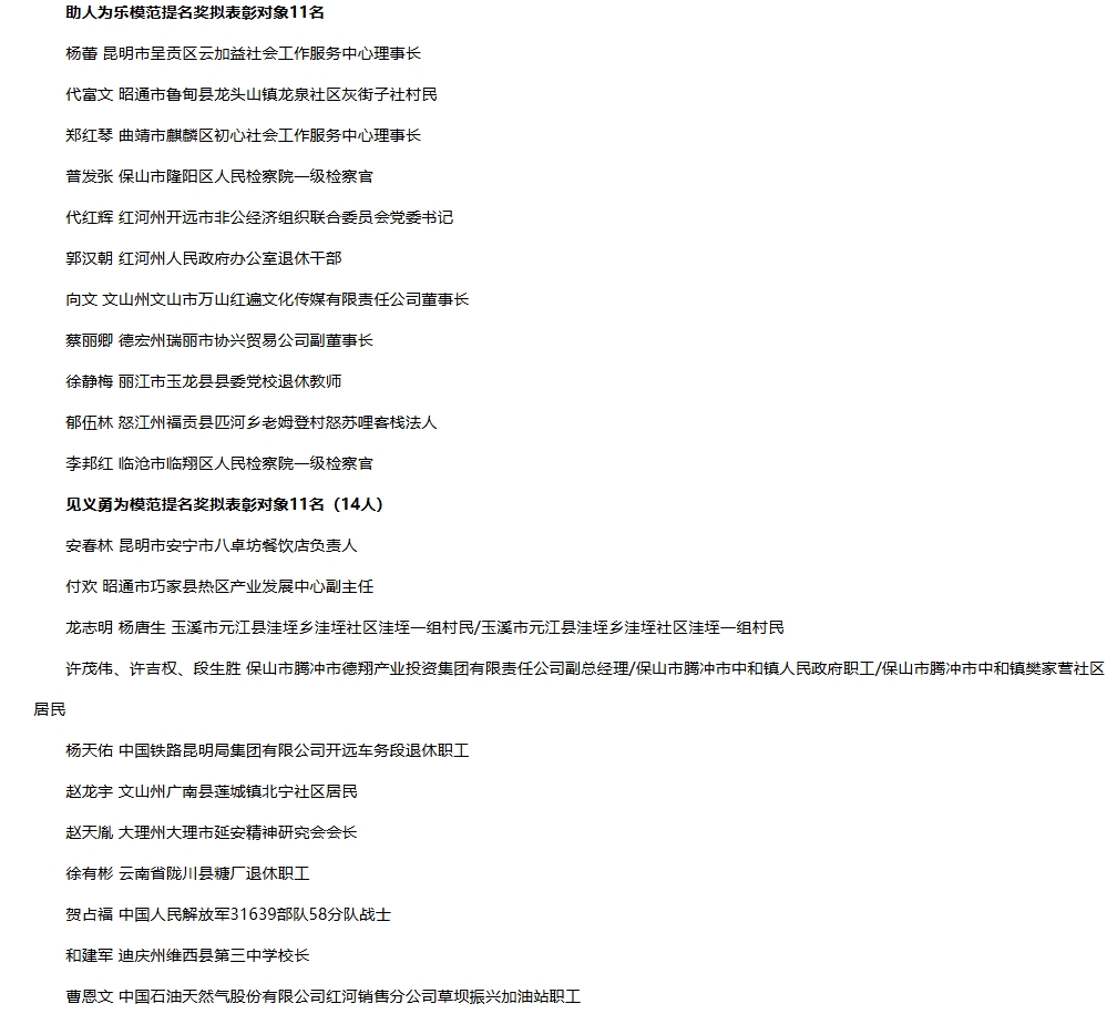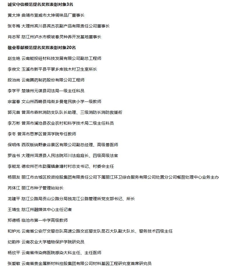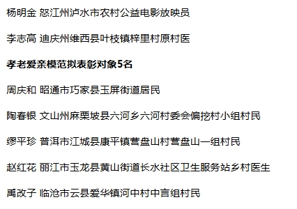 2.2023年云南省道德模范提名奖拟表彰对象名单
