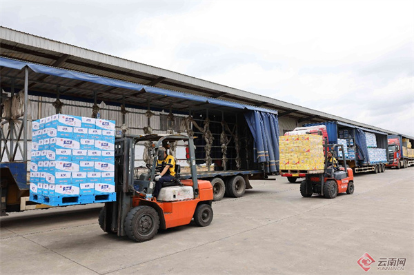 6月30日15时3分,一趟满载矿泉水、饮料等商品的X907次货运列车,从昆明铁路物流中心金马村货场2道缓缓驶出,预计当晚抵达中老铁路野象谷站。据悉,这是昆明地区开往西双版纳的首趟城际快速白货班列,标志着滇中与滇南地区依托铁路干线搭建起了一条安全、快捷、绿色的白货快运通道。