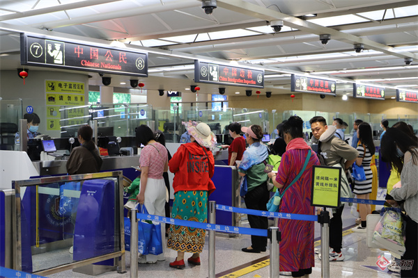昆明边检站的民警为享受免签政策的旅客办理了免签入境