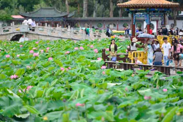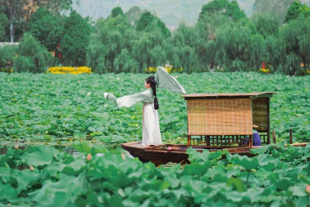 “十亩荷花鱼世界,半城杨柳佛楼台”的景象