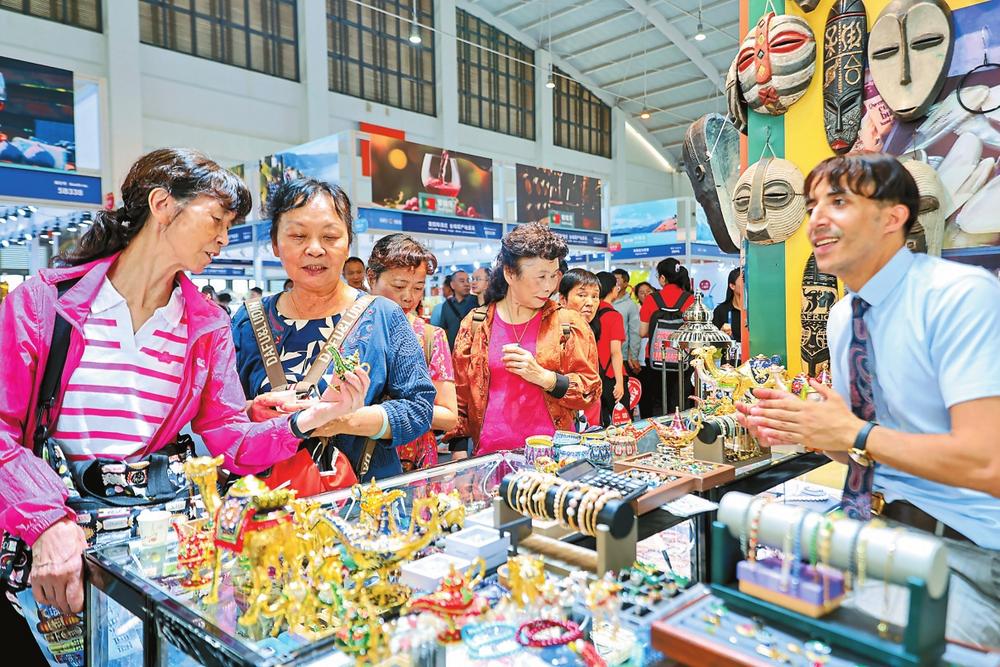 市民游客在加纳展区选购产品。