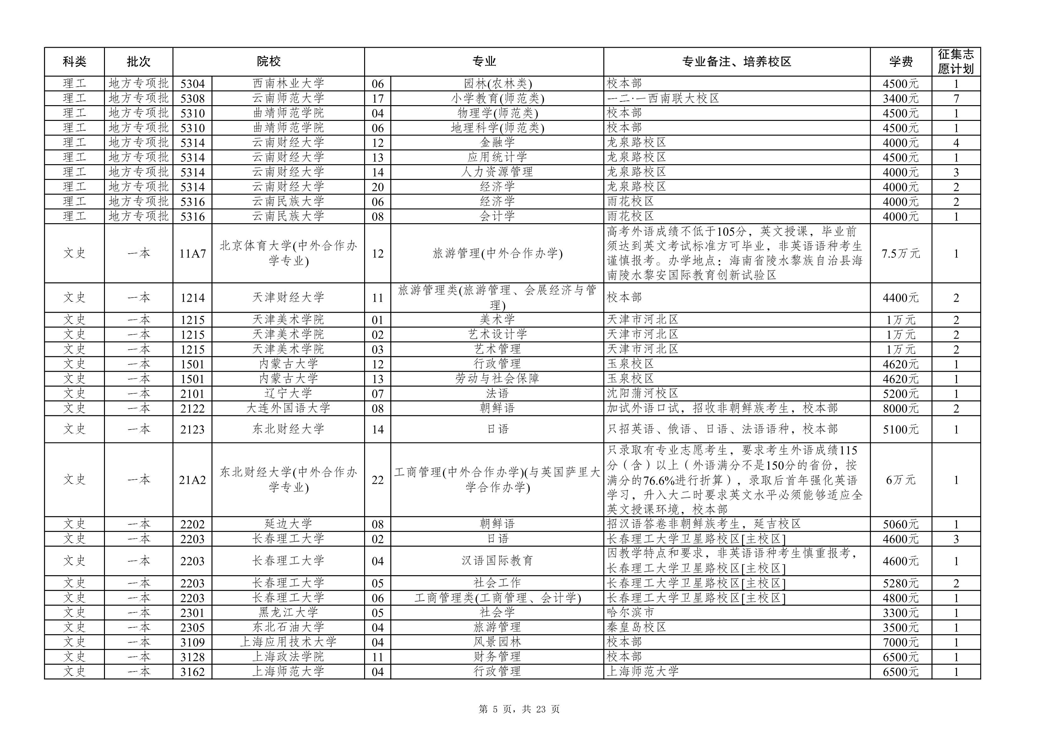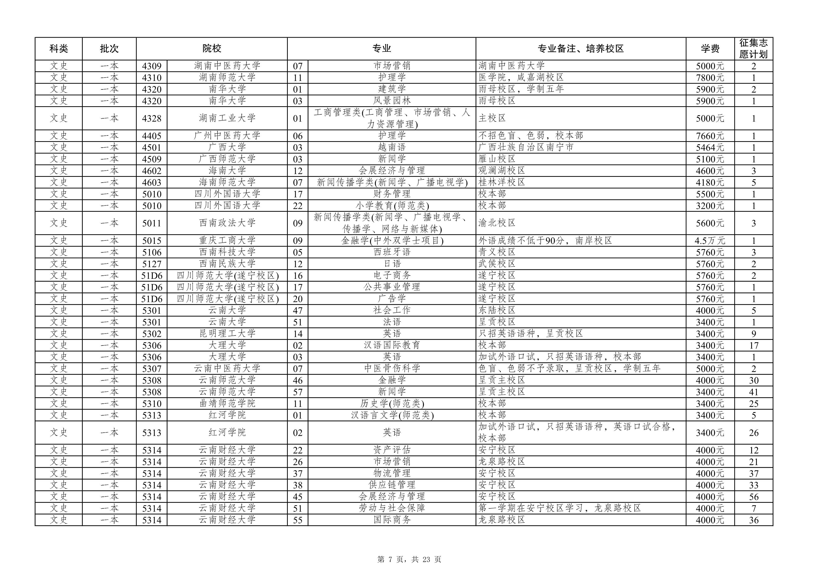 包括浙江大学、厦门大学、武汉大学、中南大学以及省内的云南大学、昆明理工大学、云南农业大学、昆明医科大学等高校均有剩余计划投入志愿征集。