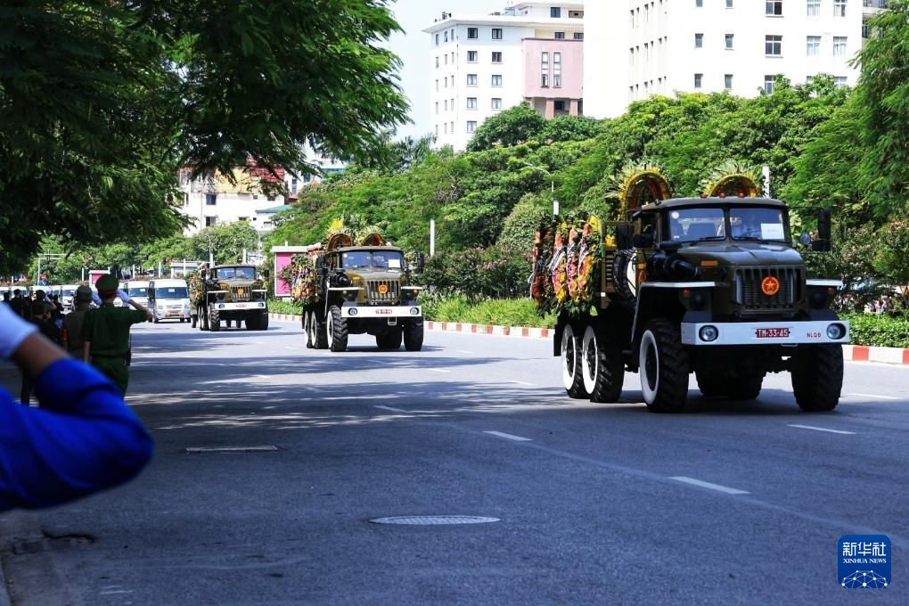 7月26日,阮富仲灵车车队行驶在越南河内的街道上。新华社/越通社