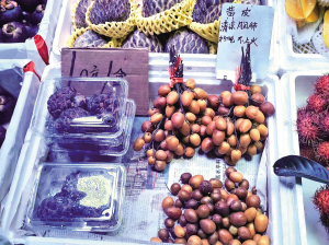 除了农贸市场,售卖黄皮果的水果店也为数不多,其价格也基本在30—60元/公斤。