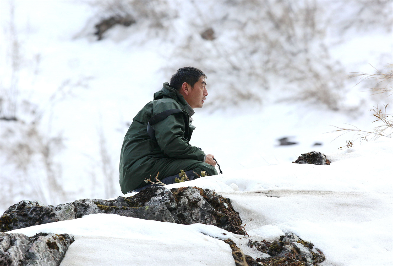 白尾梢虹雉的繁殖地都在悬崖峭壁上,从营地到巢址的路都是陡坡和悬崖,再加上下雪,有些地段积着厚厚的雪,每次去蹲守都是一路艰辛,一路惊险。王斌说,下雪的时候,大雪会把竹子全部压倒,踩在上面非常难走、非常滑,有时候可能上去一步就会往后滑三四步。不同的巢址,走的路程也不一样,正常情况下要走一个多小时,远一些的地方可能要走两个多小时。