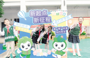 开学第一天,春苑小学学生打卡留影。记者刘凯达摄