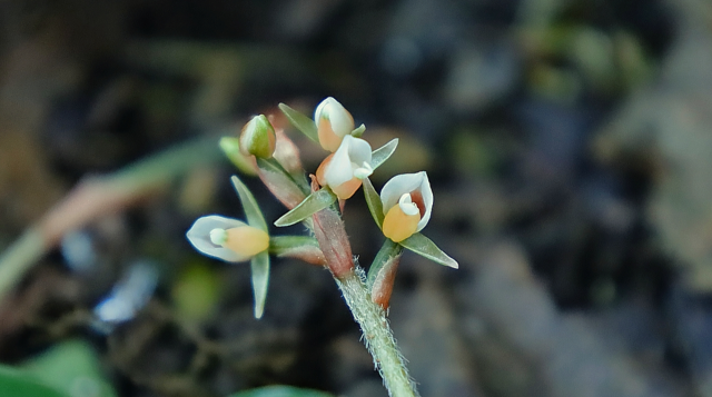 白肋线柱兰的花朵(花瓣宽度仅为1.5毫米至1.8毫米左右)比米粒还小,但在微距镜头下的微观世界中,它的“长相”竟是如此奇特和迷人:花瓣形似卵如镰,十分小巧玲珑,属于兰科家族中“迷你”成员和最独特的类型之一。特别是它那隐藏在花苞里的肉质型唇瓣,或淡黄色或金黄色,颜色格外吸睛。仔细看,藏在花苞里的唇瓣,基部凹陷,顶端圆钝且稍微凸起,酷似“元宝”,与古代元宝的形状有异曲同工之妙……它的这些独特的典型特征,颠覆了人们对白肋线柱兰花的认知。