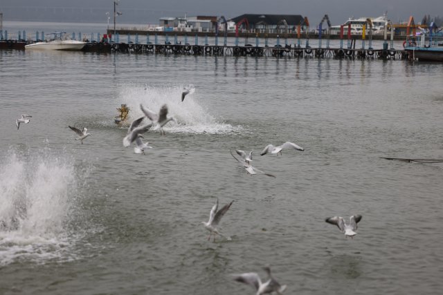 10月8日10时20分,开屏新闻记者来到昆明海埂东码头,这里是每年红嘴鸥出现最早的地方。记者刚到不久,就看到有一群海鸥飞到这里嬉戏、觅食。它们似乎与人很熟悉,看到有人投喂,就靠近过来。游客看到有海鸥也很高兴,兴奋地投喂着。记者了解到,现场参与投喂的人中有的是外地来的游客,听说滇池有海鸥了,专门来看;有的则是昆明市民,对海鸥有感情,听说海鸥来了,赶紧来投喂。