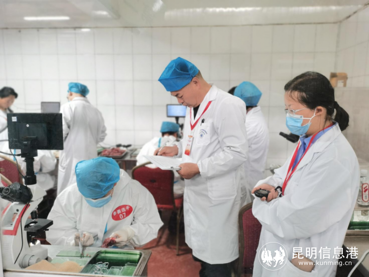 昆明信息港讯记者刘相妤 动物检疫检验是维护食品安全、防控动物疫病的重要环节。10月24日,2024年云南省动物检疫检验员职业技能竞赛在昆明市成功举办,来自昆明、昭通、曲靖、玉溪等16个参赛代表队的48名动物检疫检验员参赛,通过技能较量,展现纯熟的动物检疫检验技能水准,展示全省兽医卫生人才队伍建设成果。