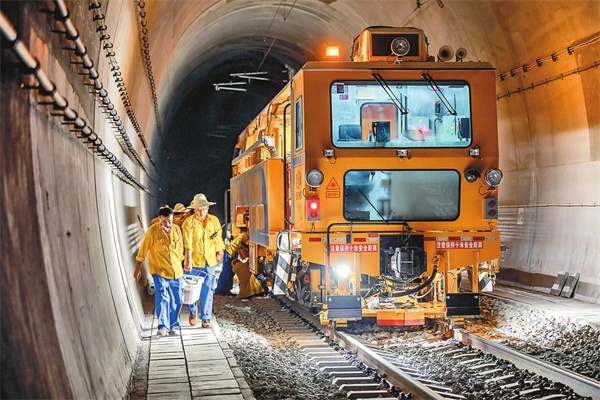 为了解隧道技术状况,及时发现和解决安全隐患,铁路部门自10月底开始,利用列车运行间隙,对中老铁路新建的167座隧道进行为期两个月的“健康检查”。这是中老铁路开通近3年来的首次隧道大规模检修。由于地质地形复杂,中老铁路全线桥隧比高达76.5%。(云南日报 记者李承韩 通讯员张伟明 罗扬 吴杰 殷学合/摄)
