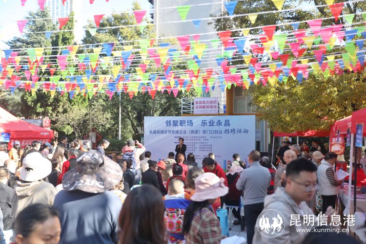 昆明信息港讯 记者张楠 11月14日,西山区永昌街道近邻党建企业(商家)家门口就业招聘活动举行。这是一场集就业招聘、志愿服务、政策宣传、便民市集为一体的活动,不仅为居民搭建了沟通交流的平台,也让居民享受到实实在在的便利和服务。