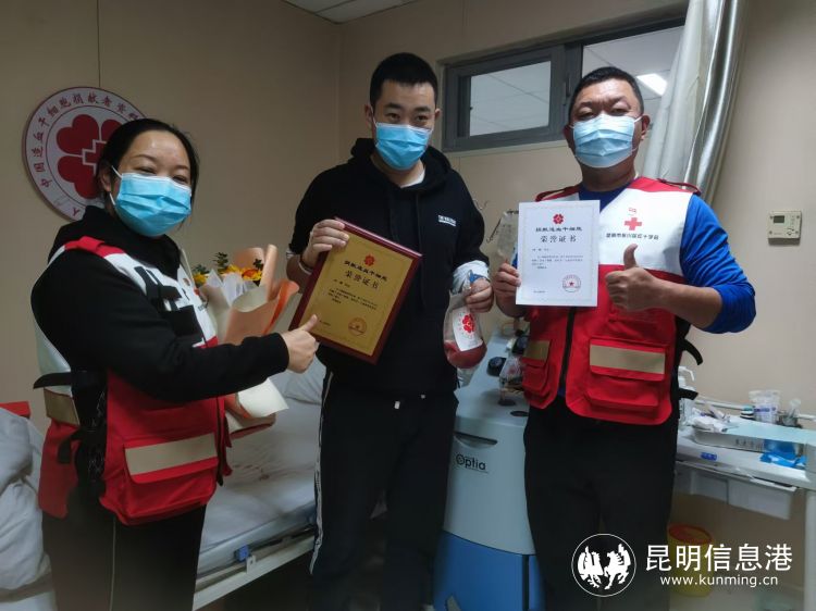 昆明信息港讯 记者李红鸾 11月26日上午,在昆明一医院,一位90后的的云南小伙小刘历经5个多小时的采集,为一名血液病患者成功捐献造血干细胞,成为云南省第421例造血干细胞捐献者。